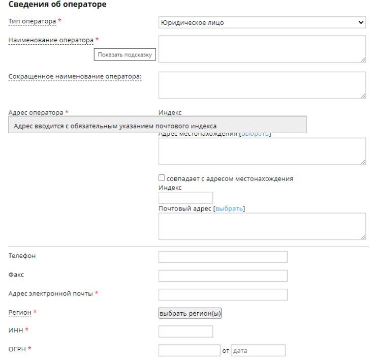 Если вы испытываете сложности при заполнении уведомления, можно обратиться за разъяснениями в территориальное отделение РКН. Есть и другой способ – найти в реестре оператора, который осуществляет аналогичную коммерческую деятельность, и посмотреть, как эти поля заполнены у него.
