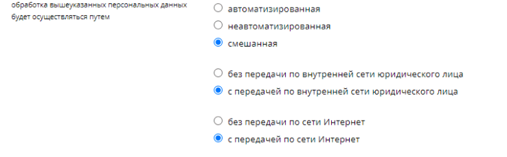 - Способы обработки, то есть какие действия оператор будет производить с этими данными: