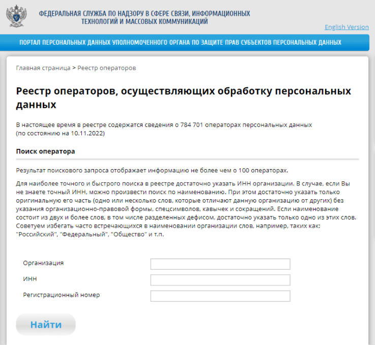 Однако стоит убедиться, что вы есть в реестре операторов, заодно проверить, какие основания обработки ПД были указаны при регистрации. Для этого надо ввести в форму поиска ИНН организации/индивидуального предпринимателя или регистрационный номер.